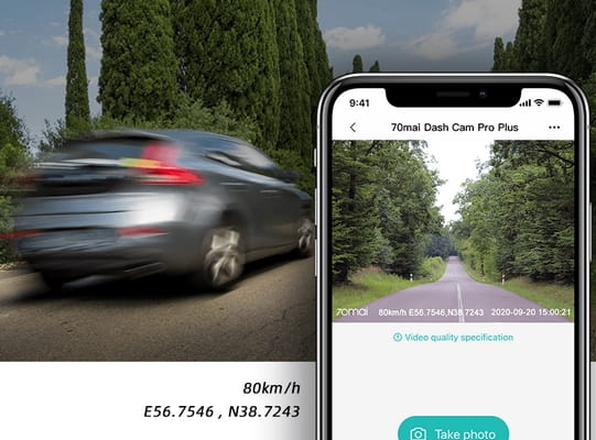 Wbudowany w kamerę samochodową moduł GPS pozwoli Tobie kontrolować prędkość. Gdy zapomnisz o ograniczeniach prędkości, 70mai A500 dodatkowo przypomni, żebyś zdjął nogę z gazu i oszczędził na mandatach. Dodatkowe informacje o współrzędnych Twojego położenia to nieoceniona pomoc podczas awarii pojazdu w środku lasu czy na pustyni podczas urlopu.