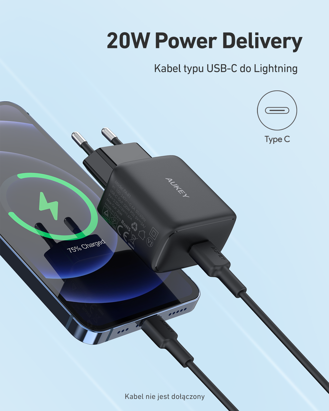AUKEY PA-R1 BLACK ŁADOWARKA SIECIOWA 20W | USB-C | POWER DELIVERY 3.0 | QUICK CHARGE 3.0
