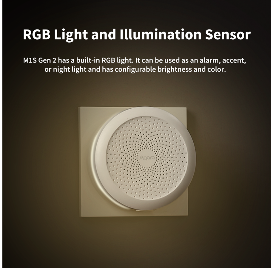Urządzenie jest wielofunkcyjne. Pełni rolę centrum sterowania podłączonymi akcesoriami, a dodatkowo poprzez wbudowany głośnik wykorzystasz je jako dzwonek do drzwi z dźwiękiem, który wybierzesz w swojej aplikacji na telefonie. Usłyszysz w nim również dźwięk alarmu po aktywacji któregoś czujnika. W przeciwieństwie do poprzedniej wersji, bramka M1S drugiej generacji pozwala na ustawienie własnego dźwięku. Hub posiada też diody LED - uruchom lampkę w jednym z 16-milionów kolorów lub zaprogramuj automatyczne włączenie o konkretnej godzinie.