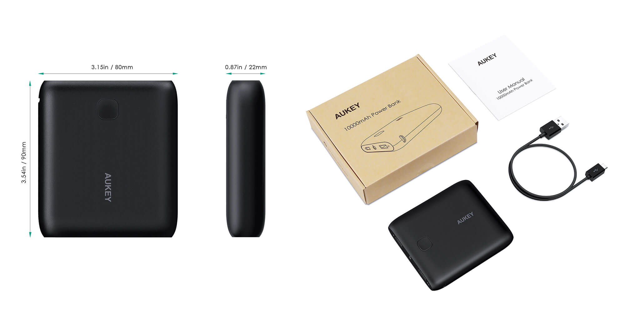 - Zawartość opakowania: AUKEY 10000mAh Power Bank, 30cm kabel Micro-USB