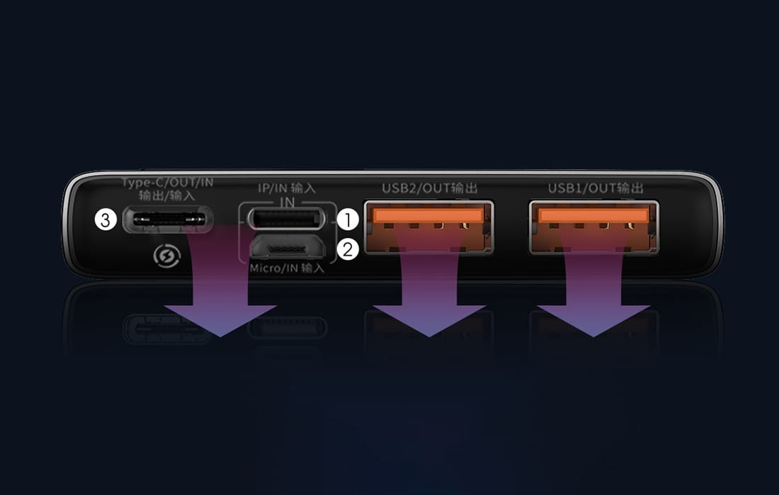 Powerbank umożliwia ładowanie wielu różnych urządzeń takich jak na przykład smartfony Samsung, Xiaomi, Huawei czy iPhone. Został też wyposażony w kilka portów. Ma wbudowane 2 porty wyjścia USB, port wejścia Lightning, port wyjścia micro USB oraz port wejścia / wyjścia USB-C.
