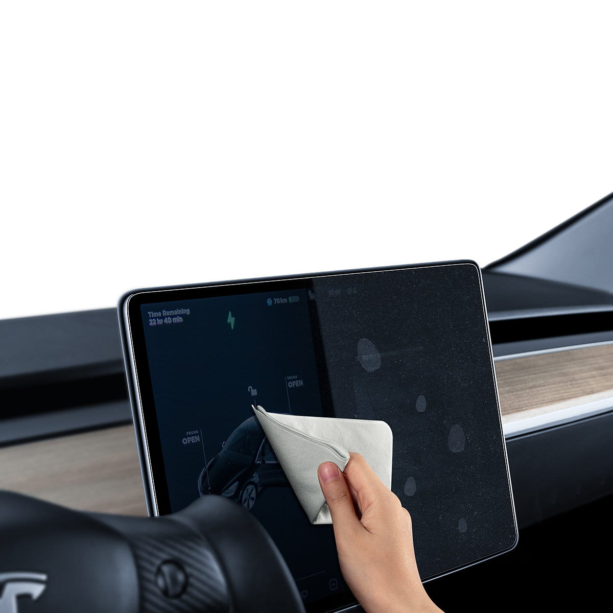 Zestaw składa się z dwóch ściereczek, z czego jedna zrobiona jest z ultra gęstego zamszowego materiału, a druga z mikrofibry. Taki zestaw pozwala na wyczyszczenie ekranu, a następnie na polerowanie.