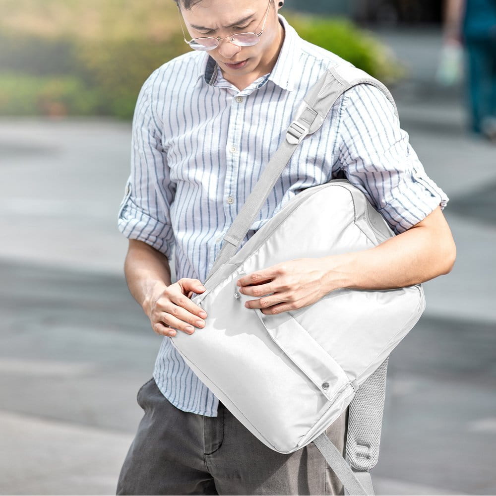 Plecak ma oszczędny design i kolorystykę, co czyni go element pasującym do stylizacji codziennych – w tym również biznesowych. Powstał z materiału oddychającego, przyjaznego dla skóry, który dobrze chroni laptopa. Jednocześnie tkanina jest wodoodporna i odporna na zadrapania, co podnosi jej wytrzymałość przy codziennej eksploatacji. W dodatku jest lekki – pusty waży zaledwie 330 gramów.