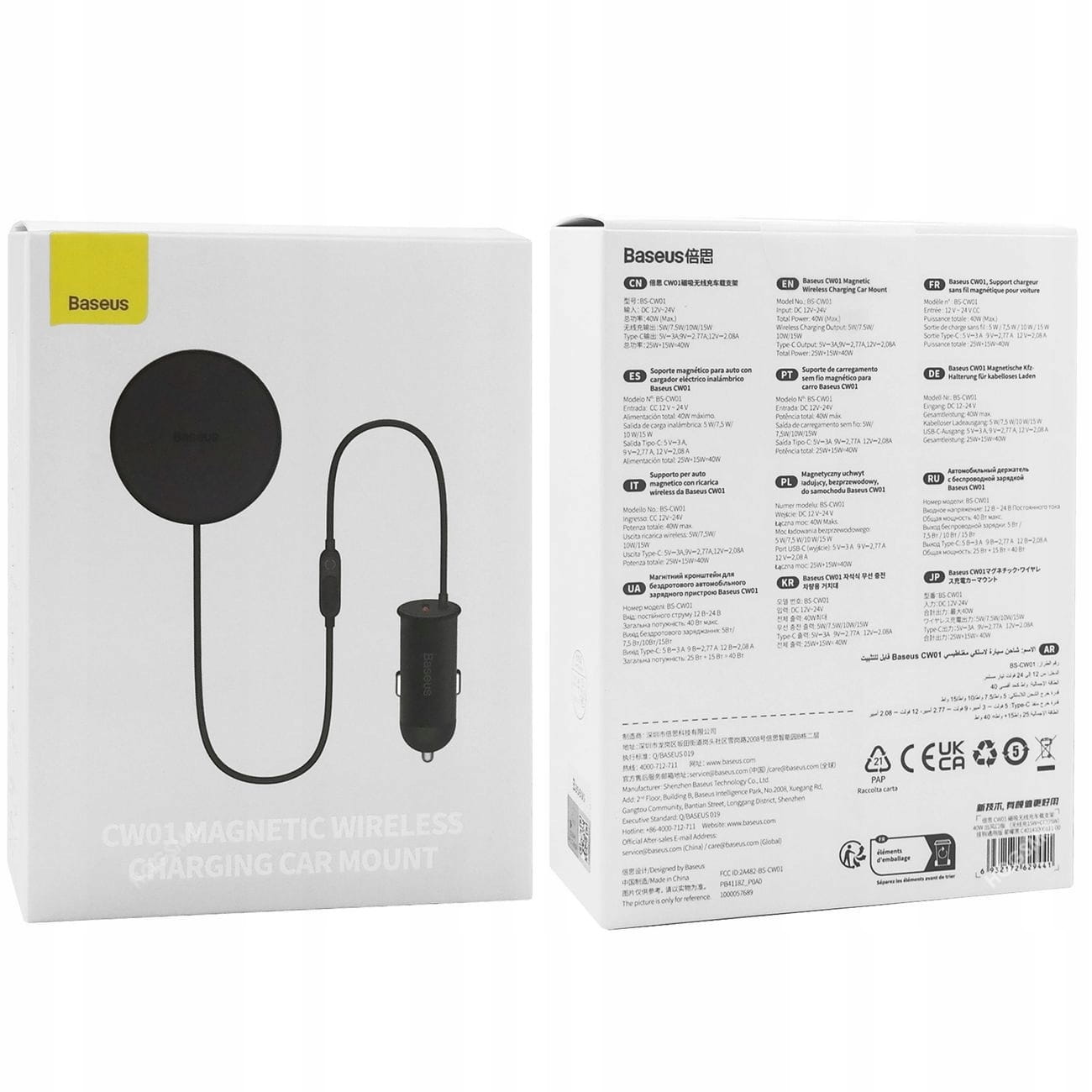 Baseus CW01 Magnetyczny Uchwyt Samochodowy QI do Kratki 15W + Ładowarka 25W MagSafe C40141000111-00