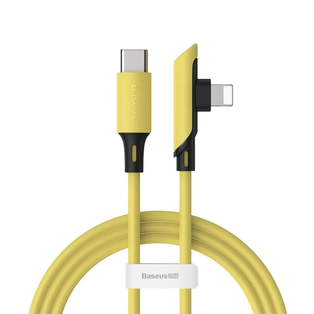Baseus Colourful kątowy kabel z bocznym wtykiem USB Typ C PD 18W - Lightning 1,2m żółty