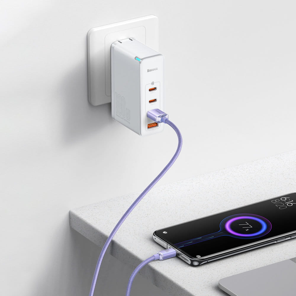 Zaletą kabla od Baseus jest również samo wykonanie końcówek. Zostały one wzmocnione, przez co są znacznie odporniejsze na uszkodzenia. Kluczowe jest również wykonanie jednej z nich pod kątem 90 stopni, przez co wpięta do telefonu czy innego urządzenia nie przeszkadza w jego użytkowaniu. W ciemnym pomieszczeniu znalezienie telefonu ułatwi Ci również specjalne podświetlenie wtyku wpiętego do telefonu.