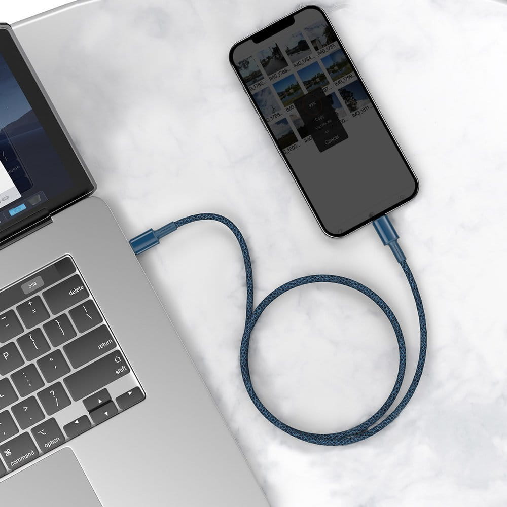 Bardzo wytrzymały kabel USB Typ C - Lightning w nylonowym oplocie. Jest wykonany z materiału charakteryzującego się wyjątkową trwałością i odpornością na zużycie. Wtyczki są zakończone wzmacnianymi obudowami i gumowymi nakładkami aby zminimalizować ryzyko przerwania kabla w tych miejscach. Jest idealny do przesyłania danych i ładowania telefonu. Wytrzymuje obciążenie maksymalnie do 20 W i nadaje się do szybkiego ładowania Power Delivery najnowszych iPhone.