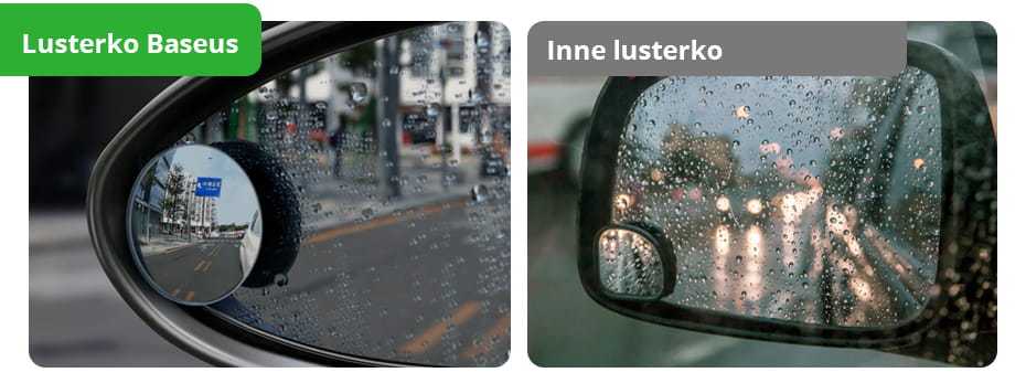 Produkt Baseus to 2 lusterka, które uzyskując optyczny kąt widzenia i zaokrąglone szkło, powiększają zakres widzenia drogi. Powłoka AF jest wodoodporna z powłoką plazmy, co daje nam efekt suchości nawet podczas deszczowych warunków.