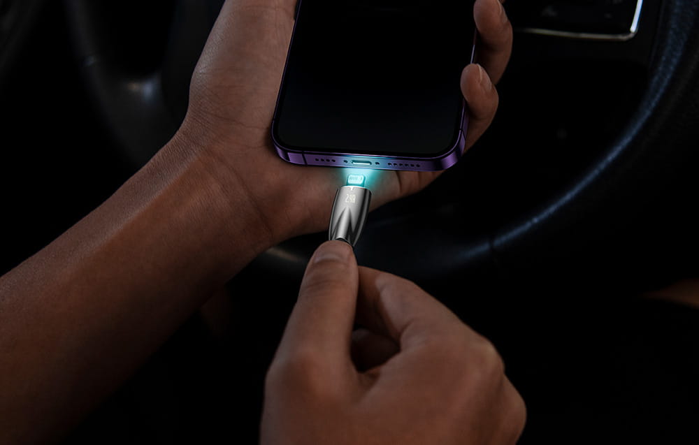 Kabel został wyposażony w specjalne podświetlenie złącza Lightning. Dzięki temu z łatwością znajdziesz kabel w ciemności i bez trudu podłączysz urządzenie do ładowania. Co więcej, w zestawie znajdziesz praktyczne zapięcie na rzep, które ułatwi Ci jego przechowywanie oraz transport – nie tylko zapobiegniesz jego zaplątaniu się, ale i zadbasz o porządek!