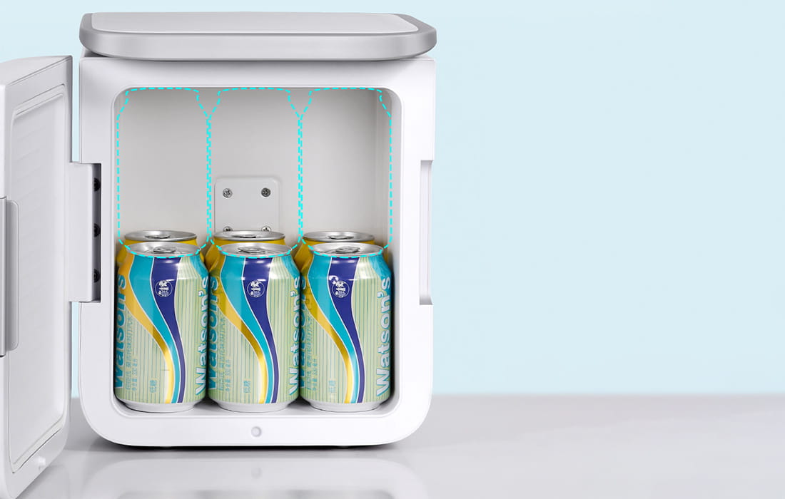 Aby spełnić codzienne zapotrzebowanie, lodówka ma pojemność 6 l, co daje jej możliwość przechowywania do 6 puszek napoju. Jej niewielki rozmiar sprawia, że jest lekka, więc można zabrać ją ze sobą, gdziekolwiek potrzebujemy. Natomiast jej uroczy, zaokrąglony design sprawi, że wszędzie będzie pasowała, budząc zachwyt wśród naszych znajomych.
