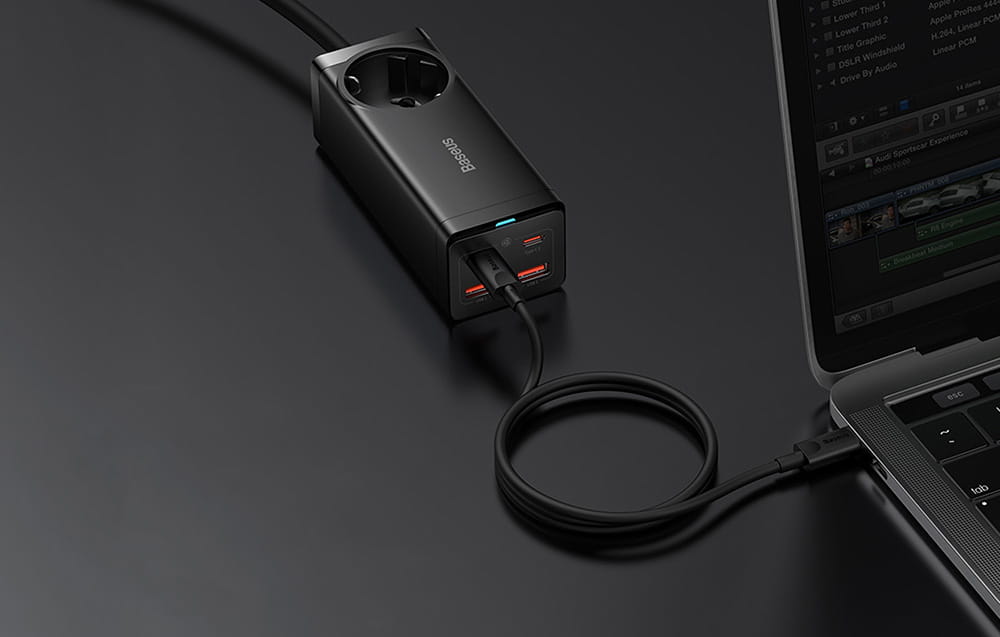 Szybko i bezpiecznie naładuj swoje urządzenia, dzięki ładowarce sieciowej / listwie zasilającej Baseus GaN3 Pro! Produkt wyposażony został w 4 wejścia ładowania, które oferują ładowanie z maksymalną mocą 100 W. Posiada również gniazdko AC, która pozwala na podłączenie m.in projektora czy elektrycznego czajnika do prądu. Zaawansowany system ochrony zapewnia najwyższy poziom bezpieczeństwa podczas użytkowania. Kabel zasilający o długości 1.5 m da Ci większą swobodę, z kolei kabel ładowania USB-C/USB-C, który znajdziesz w zestawie, ułatwi Ci ładowanie.