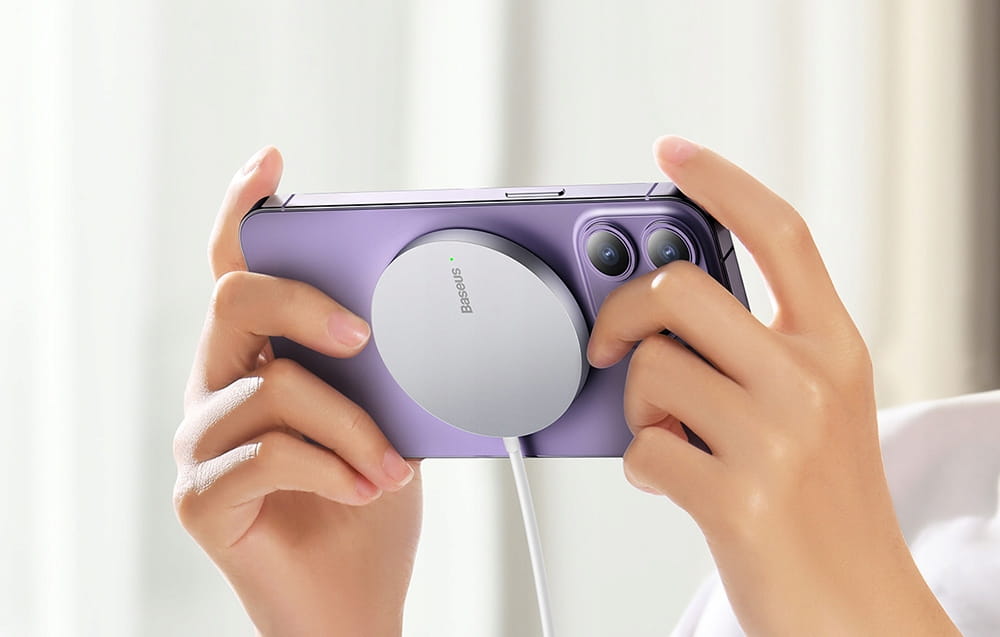 Ciesz się niezrównaną wygodą podczas ładowania telefonu. Magnetyczna ładowarka Baseus Simple Mini 3 umożliwia bezprzewodowe ładowanie z mocą sięgającą 15 W. Jest kompatybilna z iPhone’ami serii 14, 13 i 12. Posiada wbudowane magnesy, które zapewniają dużą siłę przyciągania. Pozwala również na ładowanie smartfona bez potrzeby zdejmowania etui. Na uwagę zasługuje też cienka i lekka konstrukcja.