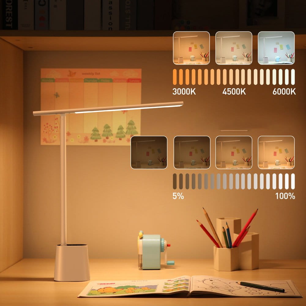 Ta bezprzewodowa lampka biurkowa zapewnia wiele możliwości ustawień rodzaju światła, dzięki czemu zapewni Ci maksymalny komfort pracy i relaksu. Możesz nie tylko regulować kąt i skupienie padania światła, ale także wybrać temperaturę barwową, która najbardziej Ci odpowiada. Masz do dyspozycji również płynną regulację jasności lub możesz skorzystać z trybu automatycznego dopasowania natężenia oświetlenia do otoczenia. To wszystko sprawia, że masz możliwość precyzyjnego dobierania parametrów. Zapewnisz sobie maksymalne skupienie podczas pracy przy biurku lub zrelaksujesz się przy delikatnym, ciepłym świetle lampki. Kompaktowe wymiary i niewielki ciężar pozwalają zabrać urządzenie wszędzie tam, gdzie chcesz. Lampka ładuje się jedynie 3 godziny, co pozwala na używanie jej 3 godziny, wykorzystując mocne oświetlenie lub 13 godzin przy lekkim natężeniu światła.