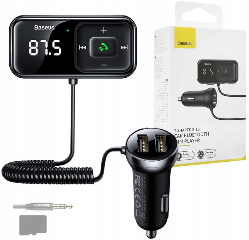 Baseus Transmiter FM Bluetooth/AUX/MicroSD 2xUSB Zestaw Głośnomówiący
