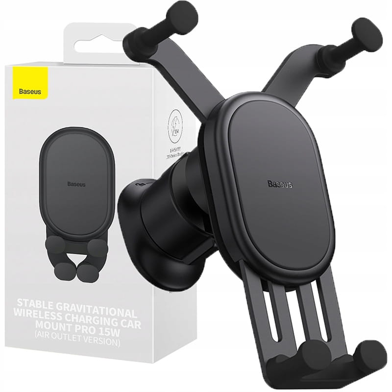 Uchwyt grawitacyjny na kratkę Baseus z ładowarką indukcyjną 15W (czarny)