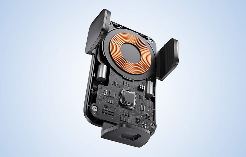 - Inteligentna ładowarka na Twoich usługach – uchwyt Baseus dysponuje funkcją ładowarki bezprzewodowej. Wystarczy podłączyć ją do źródła zasilania przy pomocy kabla USB / USB-C. Dzięki wydajnej cewce indukcyjnej i nowoczesnym podzespołom elektronicznym, automatycznie dobierze ona parametry prądu do potrzeb ładowanego telefonu i błyskawicznie go naładuje