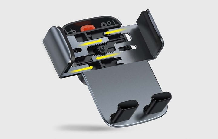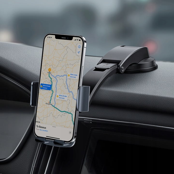 Posiada trójkątną konstrukcję zapewniającą stabilność podczas jazdy, duże możliwości regulacji (w tym obrotu o 360 stopni) oraz gumowe nakładki, dzięki którym nie porysujemy żadnego elementu auta. Do tego specjalne wycięcie, które umożliwia podłączenie ładowarki.