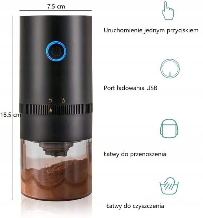 Bezprzewodowy przenośny Młynek do kawy z baterią ładowany na USB-C regulacją HG222006