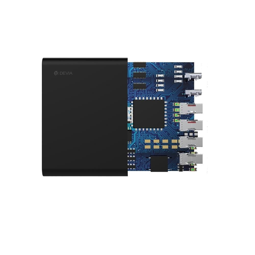 Devia Extreme ładowarka sieciowa USB to uniwersalne urządzenie, dzięki któremu podładujesz do sześciu urządzeń mobilnych jednocześnie. Ładowarka posiada aż 6 portów USB (2 USB-C i 4 USB-A), a przy ich pełnym wykorzystaniu ładowarka Devia nie traci na swojej wydajności.