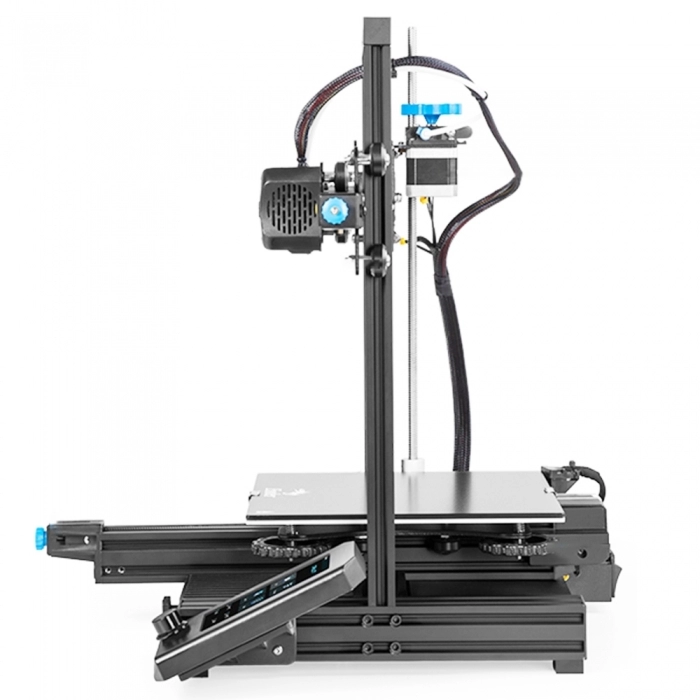 Creality Ender-3 v2 posiada całkowicie odświeżony interfejs użytkownika. Graficzny, kolorowy wyświetlacz o przekątnej 4,3' pozwala wyświetlać intuicyjne menu w przyjemnej dla oka formie w rozdzielczości HD. Warto dodać, że wyświetlacz doczekał się oryginalnej obudowy, co pozwoliło wyeliminować możliwość przypadkowego uszkodzenia elektroniki. Zmiany zaszły również w hot endzie, który otrzymał nową, przeprojektowaną obudowę.