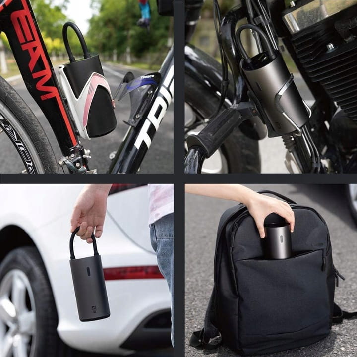 Wbudowany port USB-C sprawia, że możesz ładować kompresor za pomocą zwykłej ładowarki, ładowarki samochodowej, a nawet powerbanku.