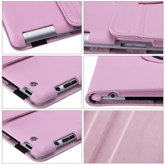 Etui wykonane jest z wysokiej jakości skóry ekologicznej. Posiada "gumkowe" zamknięcie, które zapobiega przypadkowemu otwarciu. Dzięki praktycznej, obrotowej podstawce możesz ustawić iPada pod różnym kątem nachylenia, przy jednoczesnym obrocie 360 stopni. Możliwość ta bardzo poprawia komfort pracy. Przyjemniej ogląda się filmy i surfuje w internecie.