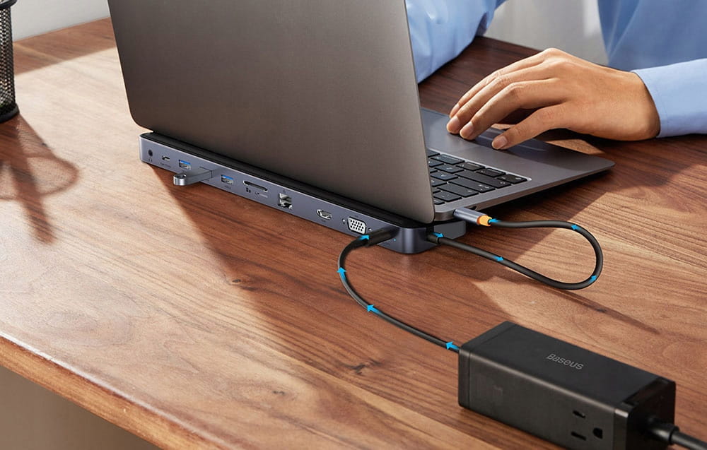 Nie obawiaj się, że Twój laptop niespodziewanie rozładuje się podczas pracy. Hub Baseus EliteJoy Gen2 pozwoli Ci tego uniknąć! Produkt oferuje dodatkowy port USB-C, który obsługuje szybkie ładowanie PD 100 W. Wystarczy podłączyć do niego zasilacz! Dzięki temu w krótkim czasie naładujesz swojego laptopa i zyskasz pewność, że nie odmówi Ci posłuszeństwa w najmniej odpowiednim momencie.