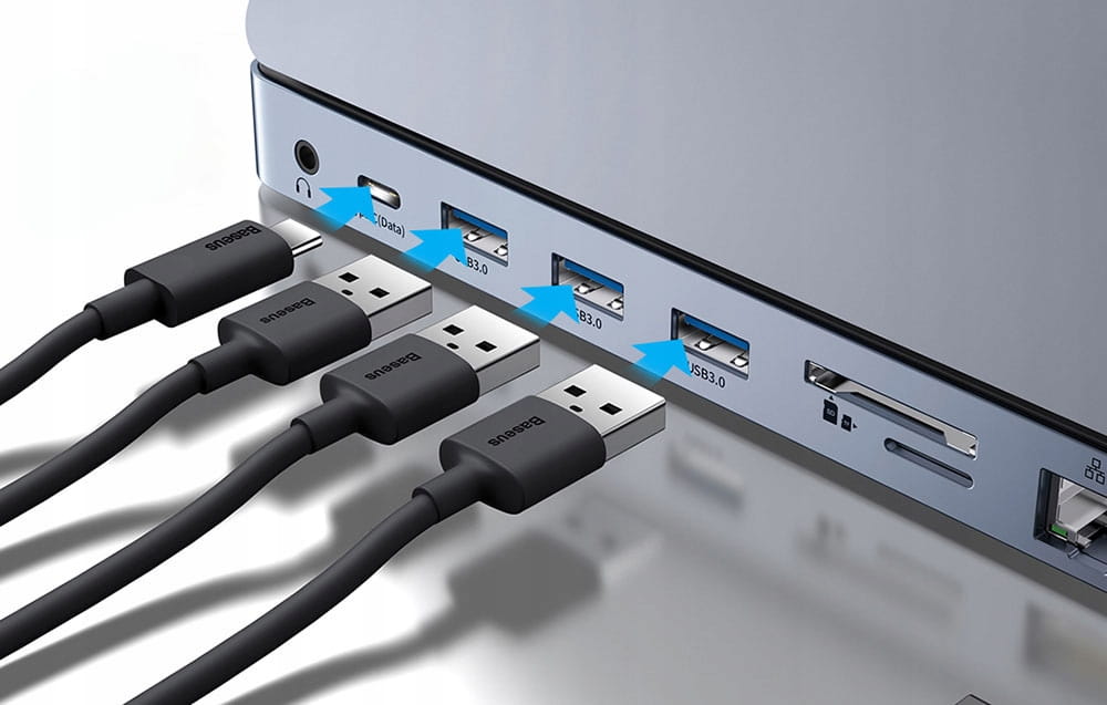 Twoja praca wymaga niemal nieprzerwanego korzystania z Internetu? A może po prostu często spędzasz dużo czasu w sieci? Z hubem Baseus stanie się to jeszcze przyjemniejsze! Produkt został wyposażony w port Ethernet, który obsługuje prędkość transmisji sięgającą 1000 Mbps. Dzięki temu możesz bez problemu oglądać filmy, grać w gry i pobierać pliki. Zapomnij o ciągnącym się w nieskończoność wczytywaniu czy buforowaniu!