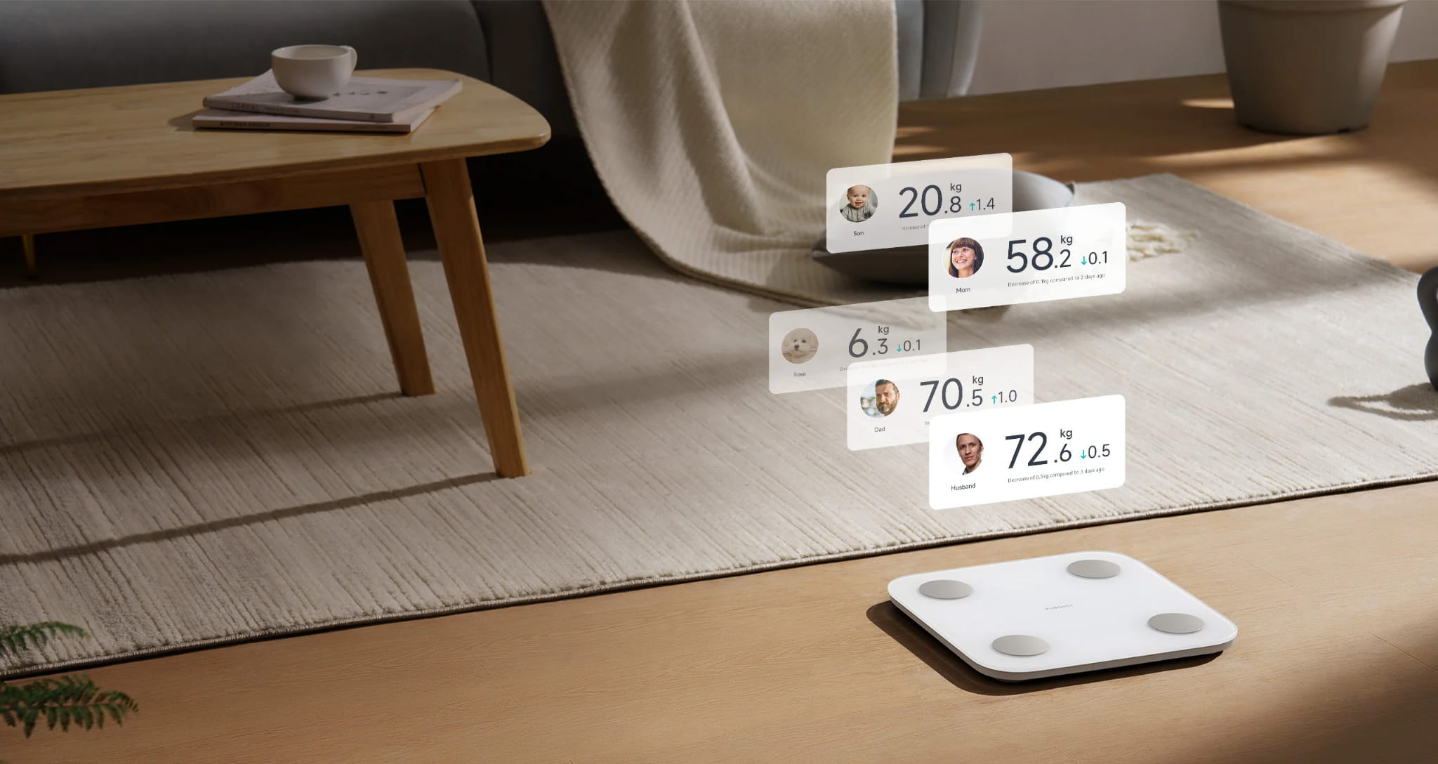 ➡️ Przełączaj tryby błyskawicznie przez aplikację Mi Home/Xiaomi Home: ważenie z dzieckiem, test równowagi, pomiar gościa (ważenie bez zapisywania danych) i pozwól gościom zważyć się.