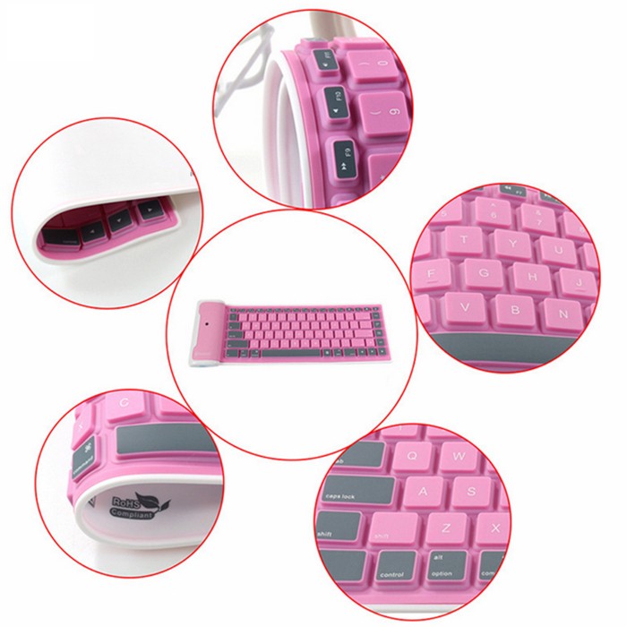 KLAWIATURA BEZPRZEWODOWA SILIKONOWA DO SMARTFONA KOMPUTERA BLUETOOTH Różowa M444003PK