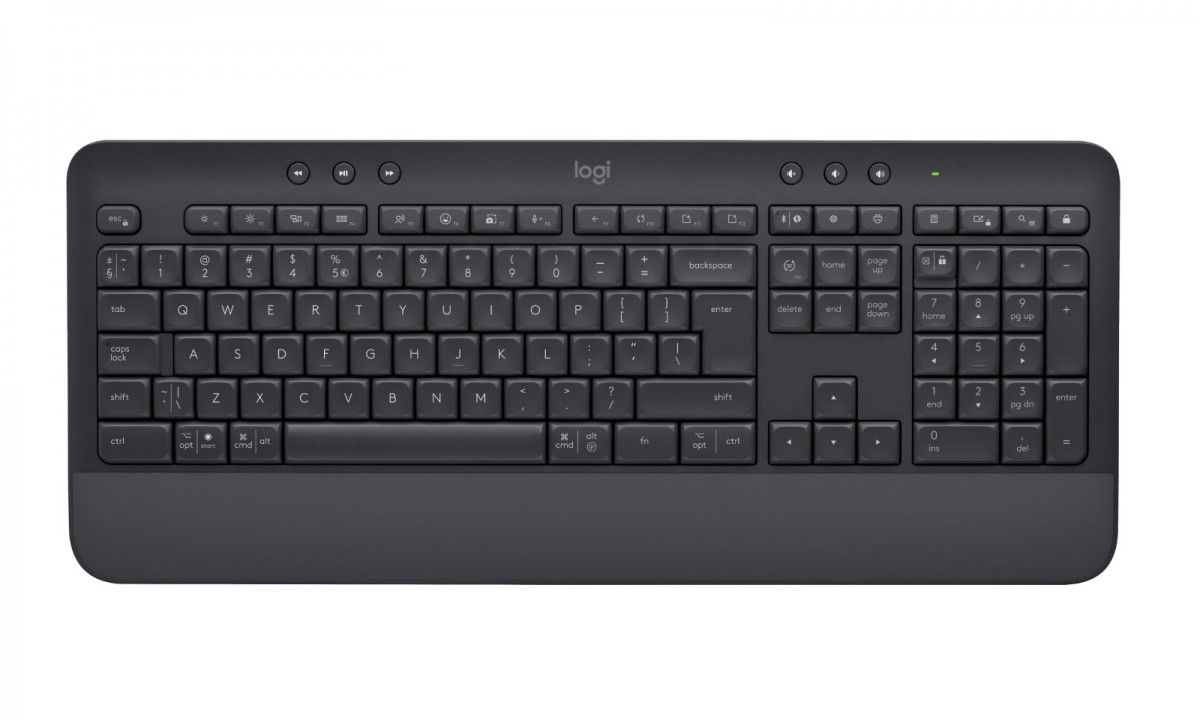 Zawartość opakowania: Komfortowa klawiatura bezprzewodowa Signature K650 2 baterie AA (umieszczone w urządzeniu) Odbiornik Logi Bolt USB Dokumentacja produktu