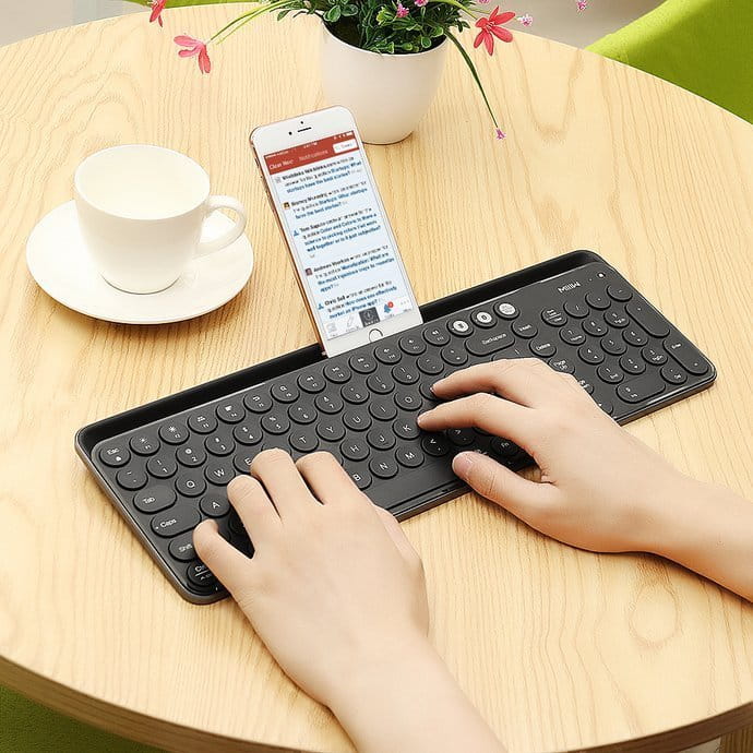 Oprócz łączności Bluetooth , która jest dość dobrze znana w innych klawiaturach bezprzewodowych. MIIIW MWBK01 jest również wyposażona w łącze bezprzewodowe 2,4Ghz . Zastosowanie obu metod połączenia bezprzewodowego na 1 klawiaturze pozwoli użytkownikom łączyć się i wprowadzać dane na 2 urządzeniach jednocześnie. Przełączanie się między urządzeniami jest proste i szybkie, wystarczy wcisnąć jeden klawisz.