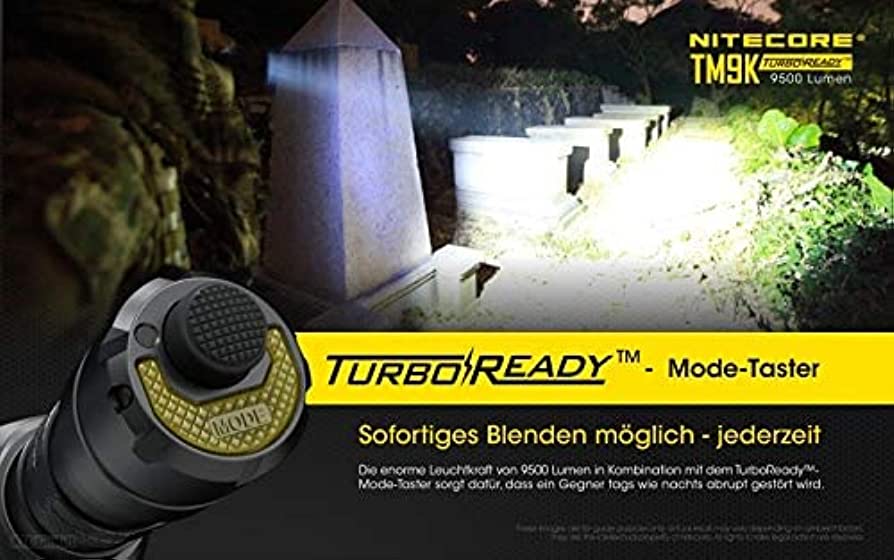 Nitecore TM9K TAC to taktyczna latarka do zadań specjalnych. Może świecić z jasnością nawet 9800 lm i jest niesamowicie wytrzymała. Wyróżnia ją także wodoodporność na poziomie IP68. Akumulator o pojemności 5000 mAh zapewnia długi czas pracy. Urządzenie oferuje 5 poziomów jasności oraz specjalny tryb Strobe. Doskonale sprawdzi się podczas akcji poszukiwawczych, świetnie nada się również do samoobrony.