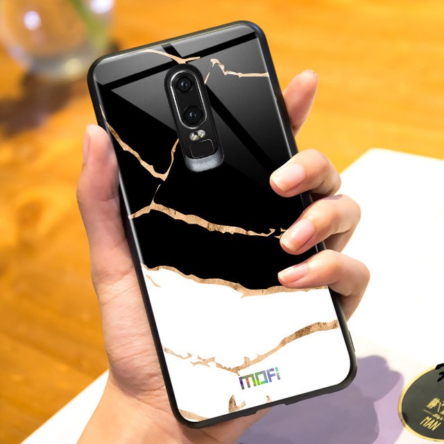 Mofi Glass Back Cover Oneplus 6T White Marbled Effect