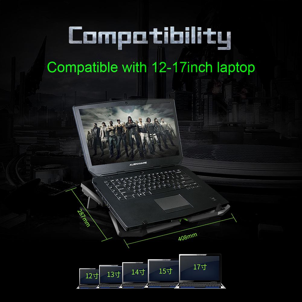 PODSTAWKA PODKŁADKA CHŁODZĄCA POD LAPTOP 10-17" 5XWENT PODŚWIETLA LED 2xUSB M555065BK