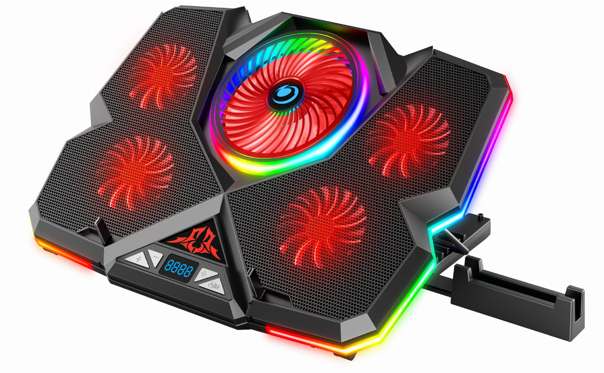 Produkt został wyposażony w panel kontrolny oraz wyświetlacz LED dzięki czemu sam decydujesz o mocy chłodzenia twojego laptopa. Przy pisaniu wypracowań czy podczas korzystania z mediów społecznościowych twój laptop nie wykorzystuje w pełni swojego potencjału. Przez co jego temperatura nie rośnie tak drastycznie jak przy rozgrywkach online. Dlatego nie musisz zawsze korzystać z pełnej mocy podkładki. Nasz produkt daje ci możliwość uruchomienia wiatraków w zależności od zapotrzebowania. Dodatkowo dostajesz możliwość regulowania prędkości obrotowej wiatraków w przedziale od 1600 do 2500 obr/min. Dostajesz dostęp do pełnego wachlarz regulacji i to Ty decydujesz w jakich parametrach ma pracować podkładka.