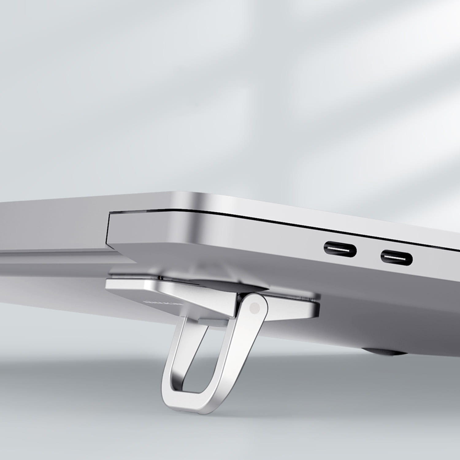 Uchwyt posiada wbudowany magnes, dzięki któremu można go złożyć, łatwo złożyć, a także ułatwić rozpraszanie ciepła. Produkt wyposażony został w anty poślizgowy silikonowy rewers, który stabilizuje jego położenie w trakcie użytkowania.
