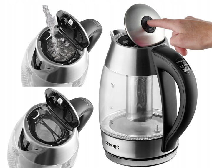 - czajnik został wykonany z wytrzymałego, nietoksycznego szkła borokrzemowego, które jest odporne na przebarwienia.