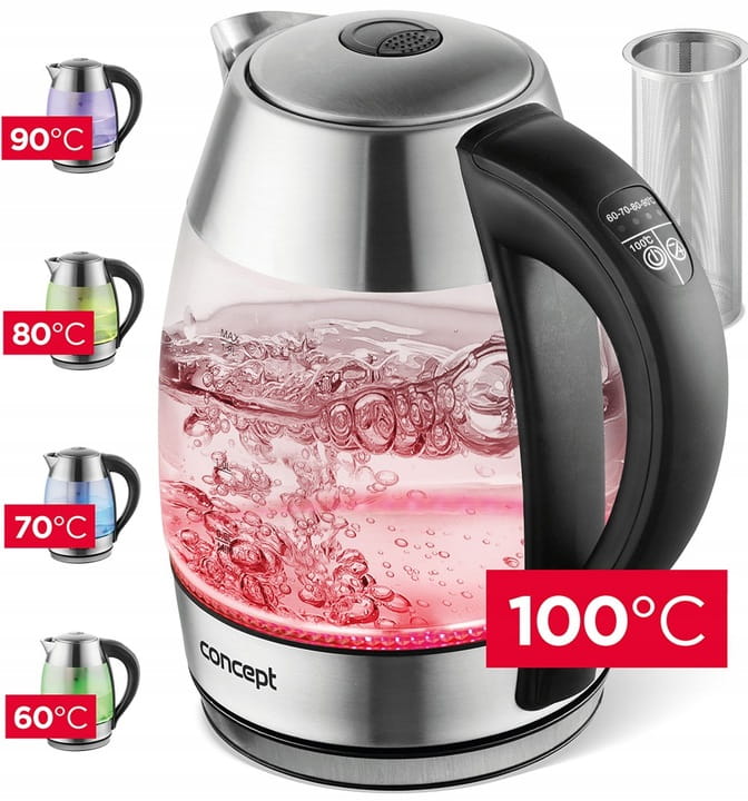 - Można wybrać temperaturę 60°C 70°C, 80°C, 90°C lub 100°C. Nadaje się do różnych rodzajów herbat, czy też do przygotowywania posiłków dla niemowląt. Napoju, który nie potrzebuje parzenia w 100 °C