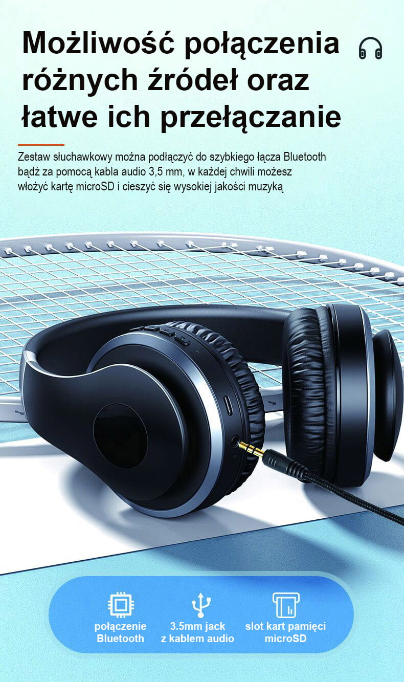 Słuchawki Bluetooth 5.1 nauszne Gamingowe M444016