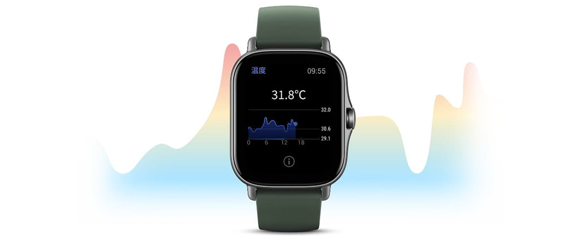 Amazfit GTS 2e działa jak termometr i szybko dostarcza informacji o temperaturze otoczenia, dzięki czemu możesz ubrać się odpowiednio do pogody.