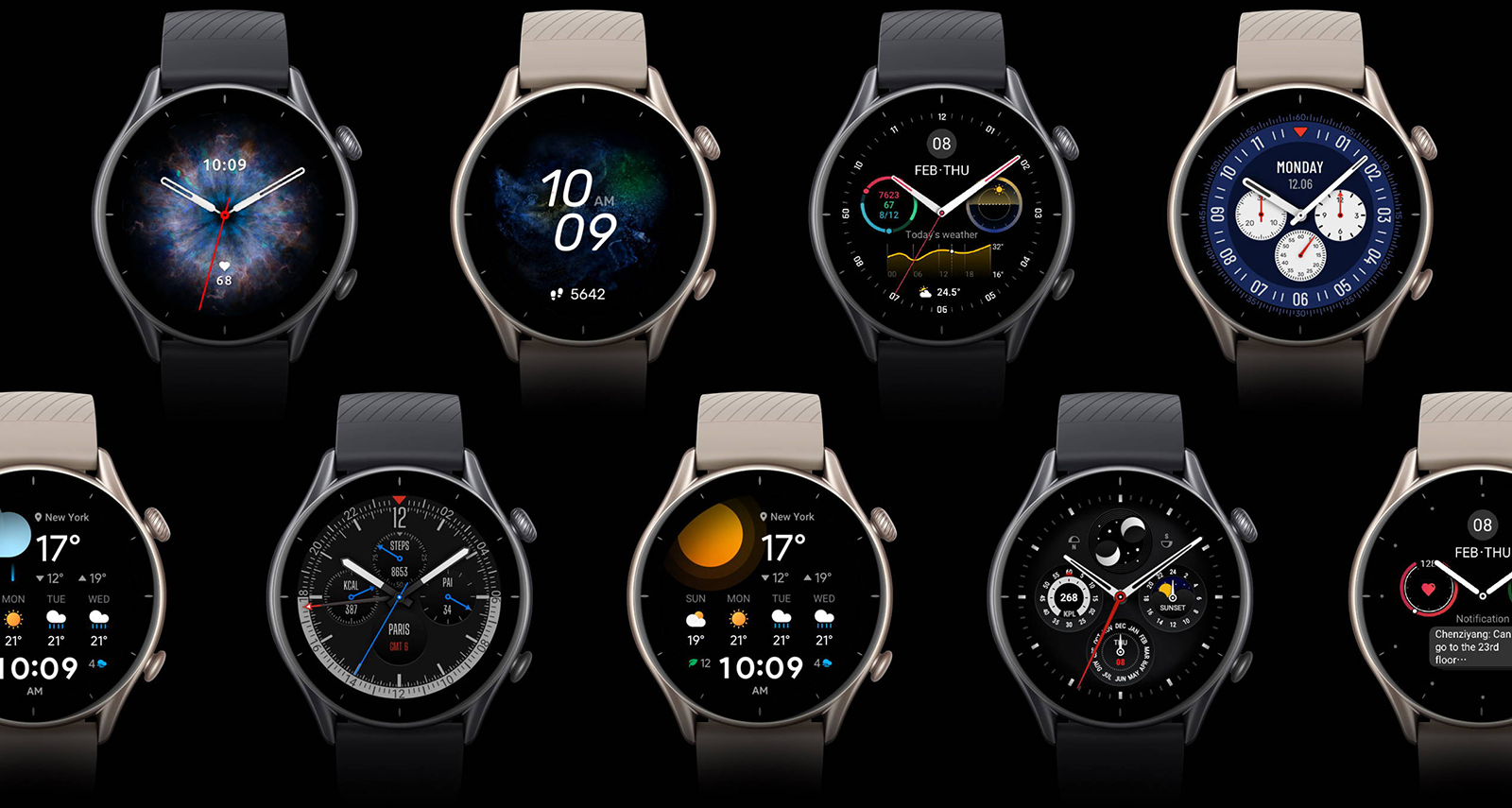 Smartwatch Amazfit GTR 3 zawsze pasuje do Twojego nastroju i łatwo dopasowuje się do Twojego stylu. Wybierz i zainstaluj unikalne tarcze zegarka spośród ponad stu opcji do wyboru lub 15 animowanych tarcz zegarka, aby nadać