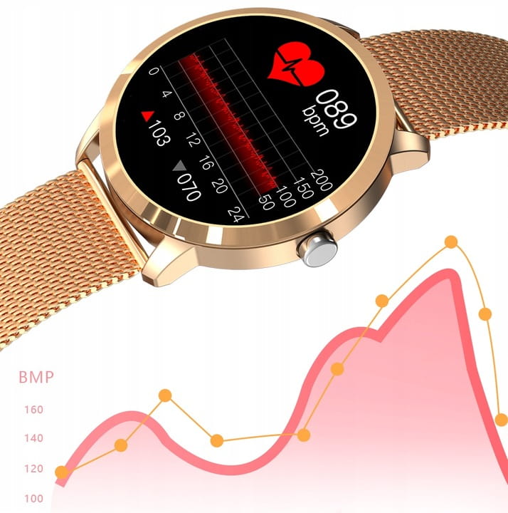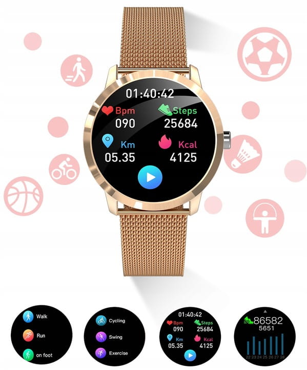 Smartwatch Rubicon RNBE66 Złoty IP67 Pulsoksymetr, Ciśnienie krwi, Pulsometr