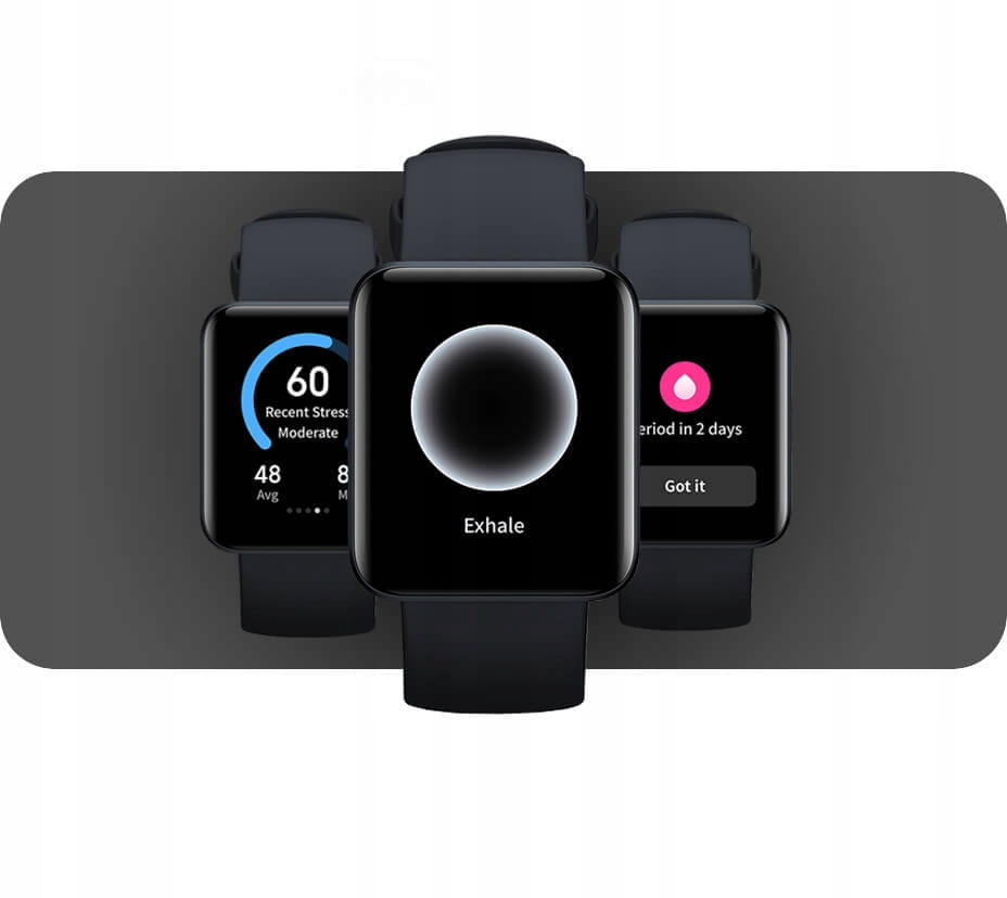 Redmi Watch to nie tylko wyświetlanie powiadomień czy funkcje sportowe. To także dodatkowe możliwości. Zegarek pozwoli Ci na poprawne przeprowadzenie ćwiczeń oddechowych, a także na śledzenie cyklu miesiączkowego.