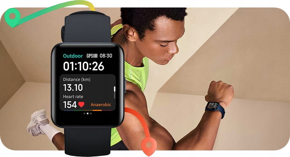 Inteligentny zegarek sportowy Redmi Watch 2 Lite z dużym, dotykowym wyświetlaczem, pojemną baterią i wbudowanym GPS.