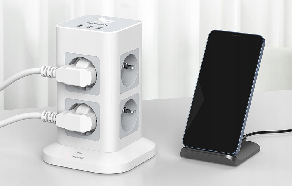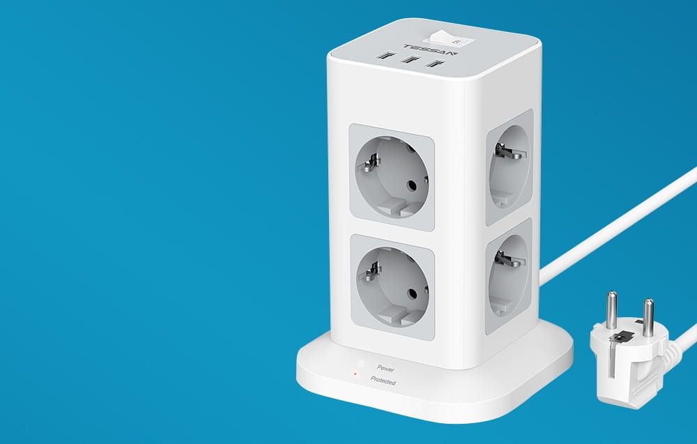 Listwa TPS03 pozwoli Ci podłączyć nawet 11 urządzeń w tym samym czasie. Możesz więc jednocześnie ładować swoje smartfony i słuchawki bezprzewodowe, a także zasilać laptopy, lampki czy wentylatory biurkowe. Do dyspozycji masz aż 8 gniazdek AC oraz 3 porty USB-A, które inteligentnie dopasowują parametry prądu do wymagań podpiętych sprzętów, zapewniając tym samym szybkie, a zarazem bezpieczne ładowanie. Z TESSAN zapomnisz o ograniczeniach!