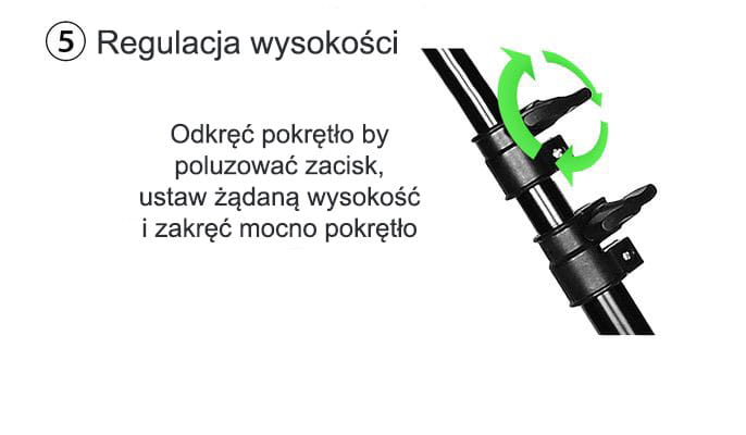 ✅ Statyw posiada obrotową głowicę, która umożliwia ustawienie dowolnego kąta