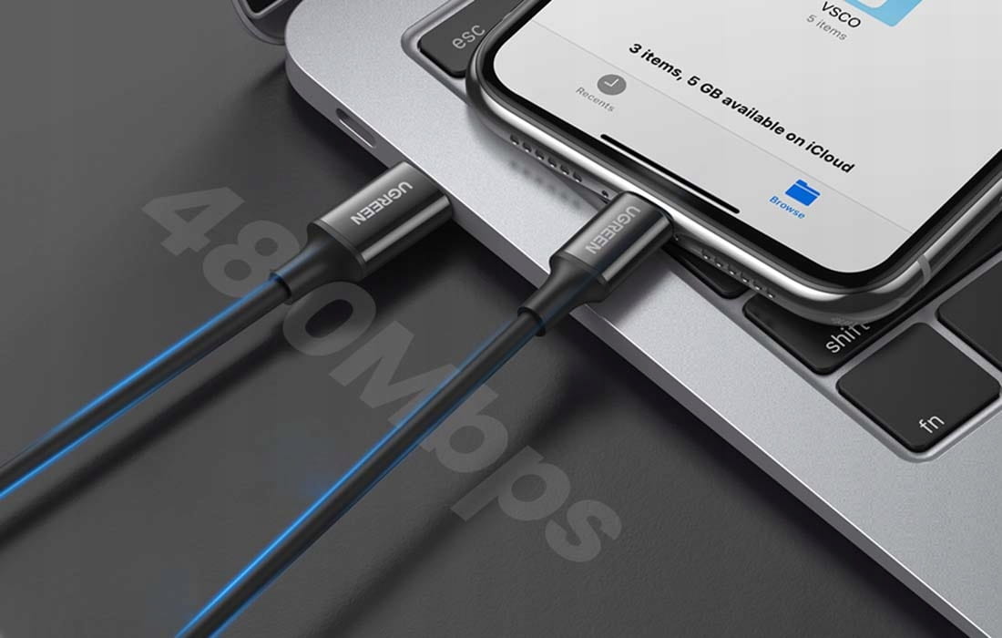 Szybka transmisja danych i ładowanie urządzenia w jednym. Pozwala na przesyłanie plików, tj. zdjęcia, filmy i dokumenty z prędkością 480 Mbps, nie tracąc przy tym jakości ładowania.