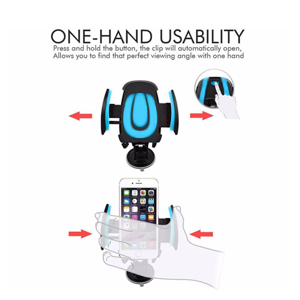 Uniwersalny zacisk na szybę pozwala na zamontowanie uchwytu w dowolnym samochodzie, bez względu na markę