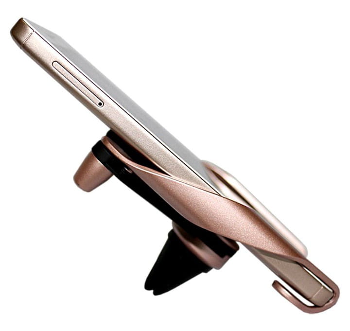 Uniwersalny zacisk na kratkę pozwala na zamontowanie uchwytu w dowolnym samochodzie, bez względu na markę